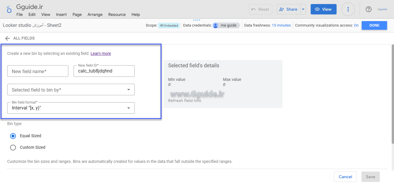 چکونه یک فیلد از نوع Bin در لوکر استودیو (Looker Studio) ایجاد نمائیم؟