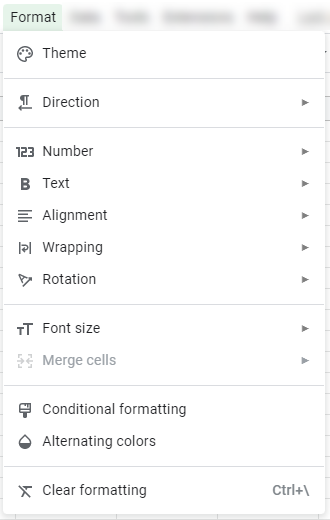 گزینههای منوی Format در Google Sheets به شرح زیر هستند؛