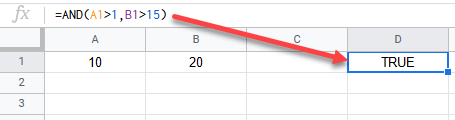 خروجی فرمول AND یکی از مقادیر TRUE یا FALSE خواهد بود، اگر تمامی گزارهها درست باشند خروجی فرمول برابر TRUE و در غیر اینصورت FALSE است.