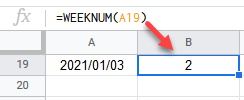 به عنوان مثال در تصویر زیر، شماره هفته تاریخ 2021/01/03 را براساس سیستم 2 محاسبه کردهایم؛