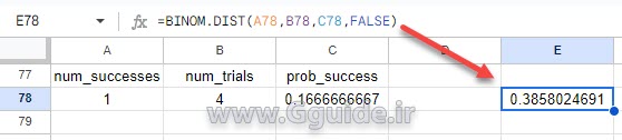 مثال از کاربرد تابع BINOM.DIST: