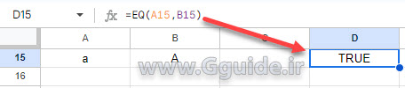 در تصویر زیر با استفاده از تابع EQ مساوی بودن دو مقدار را با یکدیگر بررسی کردهایم؛