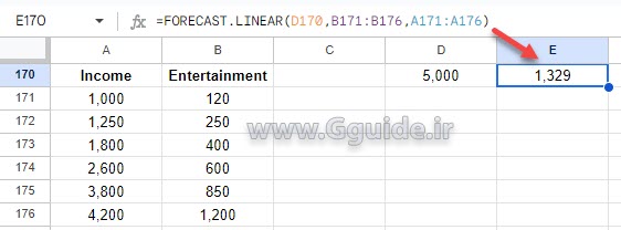 مثال از کاربرد تابع FORECAST.LINEAR: