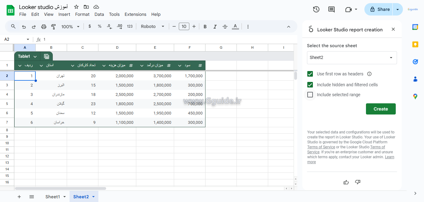 ایجاد یک گزارش از دادههای گوگل شیت در محیط لوکر استودیو (Looker Studio):
