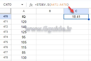 برای محاسبه انحراف معیار دادههای یک جامعه آماری، در گوگل شیت میتوان از تابع STDEV.P استفاده کرد.