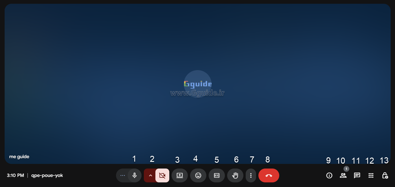 در پایین صفحه گوگل میت (Google Meet) یک منو به شکل زیر قرار دارد؛
